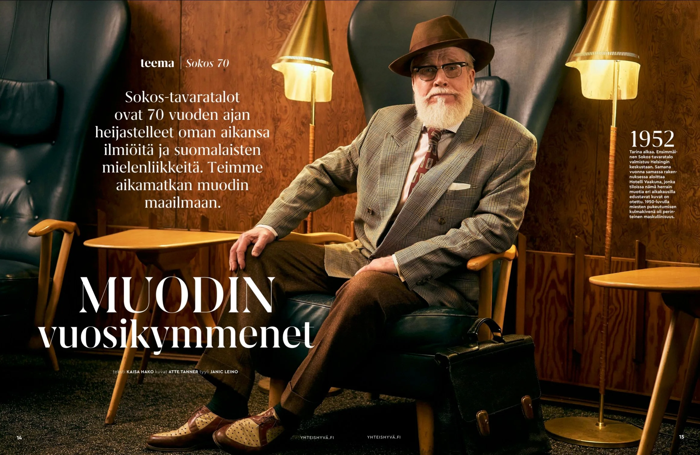 Sokos-tavaratalot turned 70. Yhteishyvä magazine commissioned me to create a nostalgic editorial to celebrate the anniversary. The story travels through time to showcase how fashion has reflected the changes in Finnish society throughout the years.